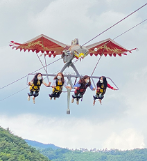 우리나라 최초로 설치된 시설로 최대 4명이 탑승 가능한 왕복형 글라이딩 놀이기구. 총길이 777m, 125m 상공을 활강하며 하늘을 나는 듯한 재미와 암벽과 호수의 웅장함을 느낄 수 있는 체험 시설