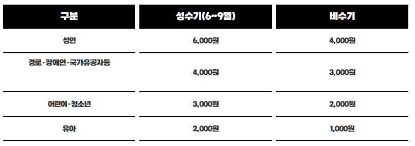 - 경로, 장애인, 국가유공자 등: 4,000원