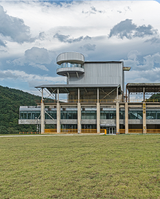 무릉 3 지구에서 채굴된 석회석을 쇄석 하던 공간으로, 2019년부터 2021년까지 리모델링을 통하여 복합문화공간으로 재탄생했습니다. 외부 컨베이어벨트, 육중한 콘크리트 기둥과 내부 기단은 시멘트를 생산하던 시설의 정체성과 기억을 그대로 전달합니다. 쇄석장 내 4층에 위치한 전망카페에서는 커피 한잔의 여유와 함께 에메랄드 빛 호수와 라벤더정원을 한눈에 내려다볼 수 있습니다.