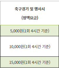 승용차의 경우 5분당 150원, 중형차(미니버스) 5분당 300원, 대형차, 5분당 450원의 요금이 발생합니다.