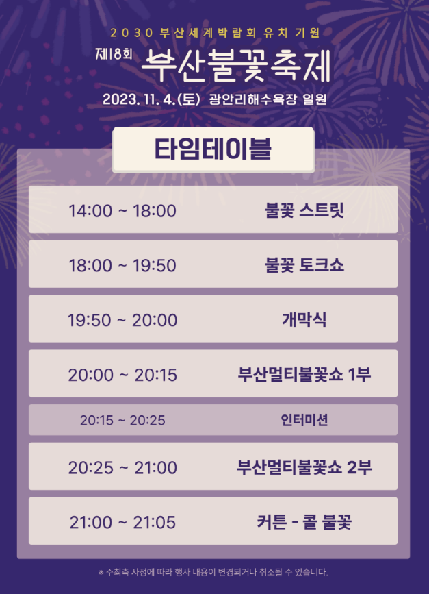- 20시 25분~21시 부산멀티불꽃쇼 2부