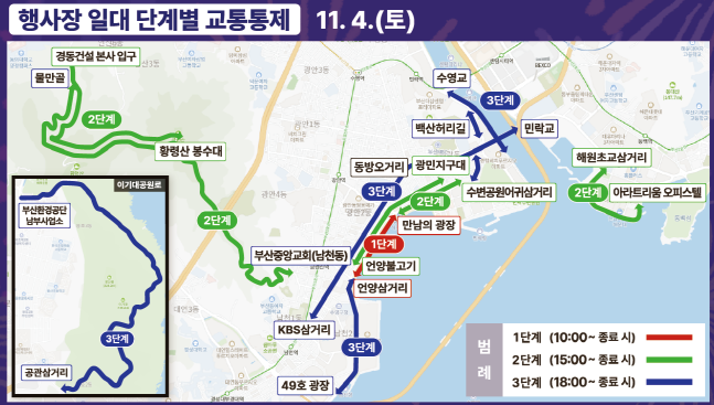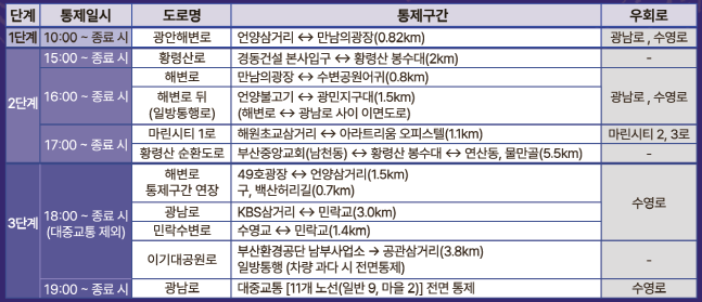 부산불꽃축제 당일에는 행사장 일대가 교통통제가 이뤄집니다. 자세한 내용은 아래 사진을 참고하시기 바랍니다.