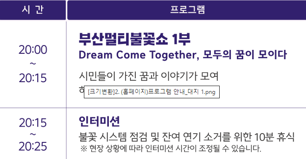 - 20시~20시 15분 부산멀티불꽃쇼 1부
