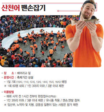 대한민국 대표 지역축제, CNN이 선정한 세계 겨울의 7대 불가사의, 세계 4대 겨울축제, 문화체육관광부가 선정한 대한민국을 대표하는 문화관광축제라고 불리며 하루 10만 명의 관광객이 방문을 하는 축제 화천 산천어축제 입장료, 주차장 정보에 대해서 알려드리겠습니다.